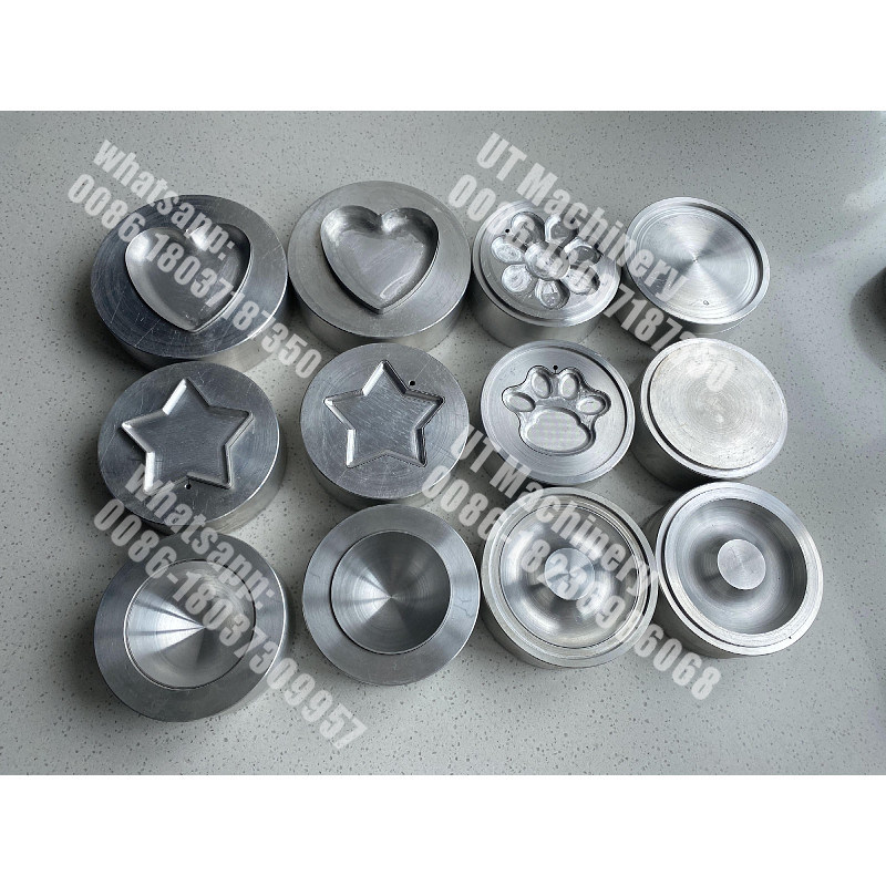 Die obere und untere Hälfte der Form entspricht der Form der zu produzierenden Badebomben.Die Pulvermischung wird manuell in die untere Hälfte der Form gegeben und der Zylinder senkt die obere Hälfte, um das Pulver zu komprimieren, um die gewünschte Form zu bildenDer Komprimierungsprozess verformt die Partikel des Mischpulvers und erhöht seine Dichte erheblich.